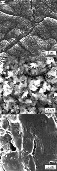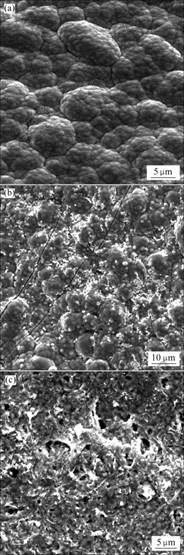 Fig.3 SEM images of Sn-Ni alloy film after discharge: (a) NiSn-1 after 60 cycles; (b) NiSn-2 after 40 cycles; (c) NiSn-3 after 1 000 cycles
