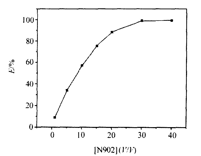图3 萃取剂浓度对萃取率的影响 Fig.3 Effect of concentration of N902 on percentage extraction
