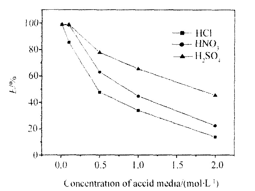 图7 阴离子介质对萃取率的影响 Fig.7 Effect of different acid media on percentage extraction