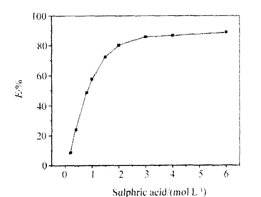 图9 硫酸浓度对反萃率的影响 Fig.9 Effect of sulphuric acid concentration on percentage stripping
