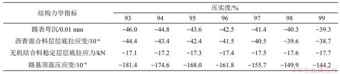 表4 不同压实度下结构力学指标极值