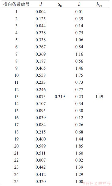 表8 横向条带一致性统计量h计算结果