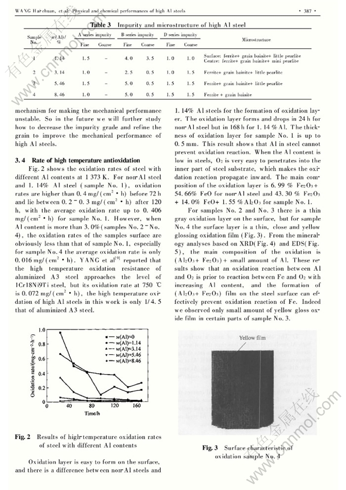Physical and chemical performances of high Al steels①