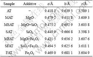 3) There is minor phase of MgAl2O4 and Mg2SiO4 in the sample with MgO and MgO+SiO2, respectively as additives; the lattice constant c of AT increases with the application of additives, thus improves stability of AT.