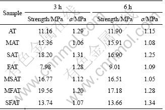 Besides, it is clearly seen that the sintering duration of 6 h or 3 h poses little difference on the bending strength of all samples in the experiments. For instance, sample SAT has strength of 18.2 MPa sintered for 3 h and 16.9 MPa for 6 h, and MFAT has strength of 19.56 MPa sintered for 3 h and 17.18 MPa for 6 h. The little decrease of mechanical strength may be mainly caused by the growth of crystal grains for longer calcination duration.
