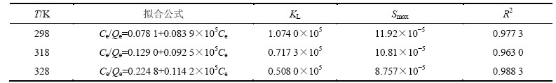 其中:R为热力学气体常数,8.314 J/(mol·K);T为热力学温度,K;KL为Langmuir常数。