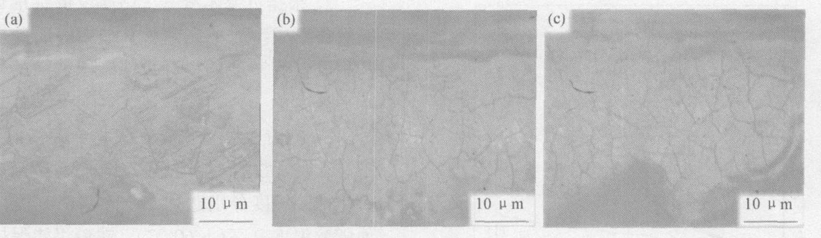 图2 不同工艺条件下的晶粒大小 (a) 95 ℃, 3.25 A·dm-2; (b) 70 ℃, 3.25 A·dm-2; (c) 95 ℃, 12 A·dm-2