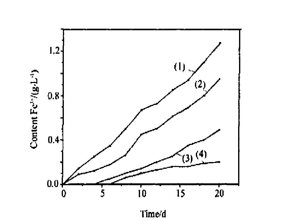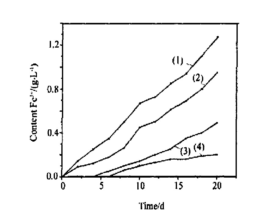 (1) 无添加剂 (30℃) ; (2) 铁粉 (10 g·L- 1) ; (3) 抗坏血酸 (2 g·L- 1 ) ; (4) 葡萄糖酸钠 (2 g·L- 1 )