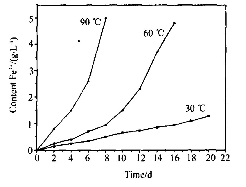 Fig.4 Ferrous iron oxidization in electrolyte at different temperatures