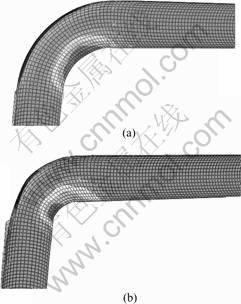 Fig.8 Geometrical configuration of LF2M bent tube by FE simulation: (a) 1.5D; (b) 1D