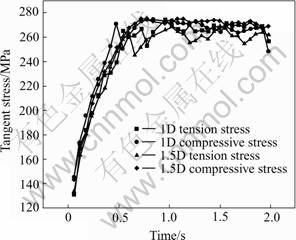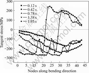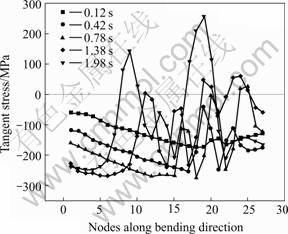 Fig.9 Tangent stress of nodes along bending direction with 1.5D