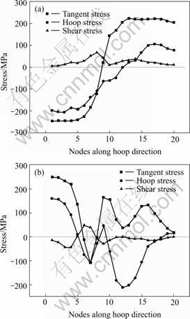 Fig.10 Stresses along hoop direction at different degrees with 1.5D: (a) 0?; (b) 45?