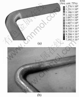 Fig.23 1D 1Cr18Ni9Ti bent tube by FE simulation and experiment: (a) Bent tube by FE simulation; (b) Bent tube by experiment