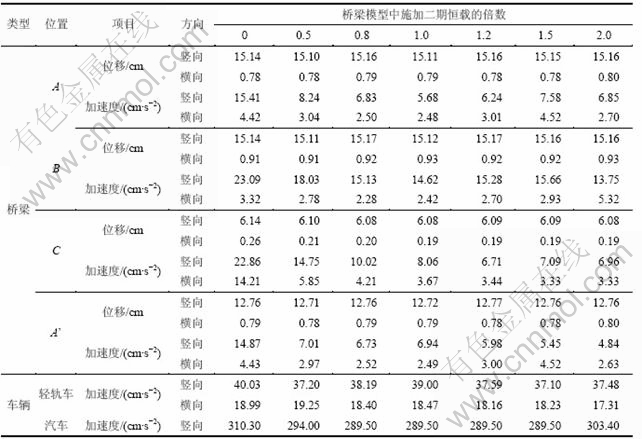 对于大跨度斜拉桥,由于二期恒载在总恒载中所占比例较大,考虑二期恒载质量的影响后,结构的自振频率将明显减小。车桥振动计算结果表明:二期恒载质量对桥梁结构的位移响应影响较小,但对其加速度响应影响明显。随着二期恒载质量所占比例的增大,桥梁结构的加速度响应开始减小,但超过一定比值后,其加速度响应又可能增大。因此,仅用桥梁自振频率来分析结构的动力刚度是不全面的。另外,适当的二期恒载质量会减小车桥系统的动力响应。