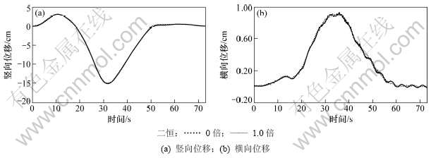 Fig.4 Time history cures of node B’s displacement at left upper chord in middle span of bridge