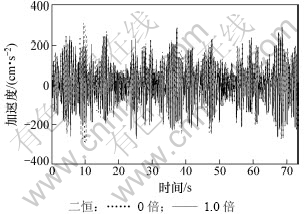 Fig.6 Time history cure of vertical acceleration of first monorail train’s body