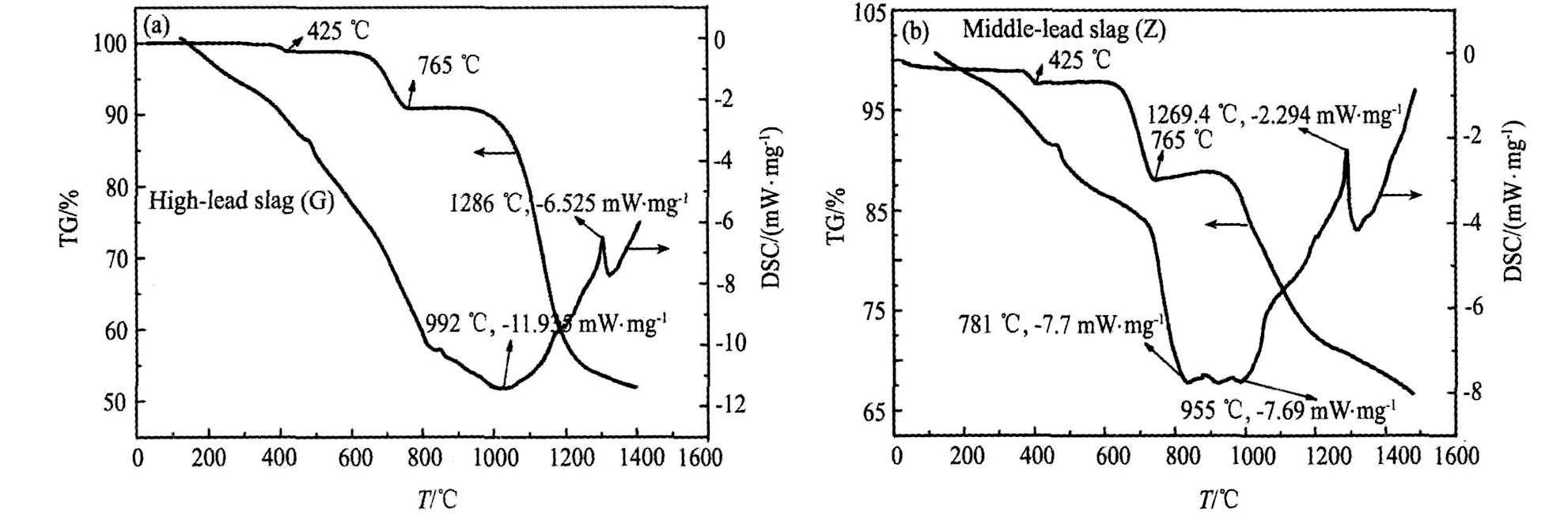 液态高铅渣 ;熔点 ;热重-差热分析 ;