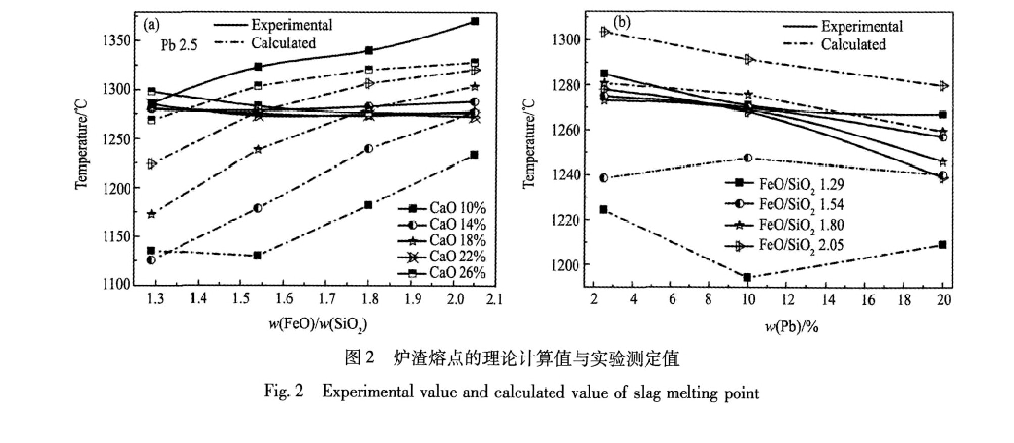 , 使得研究的铅渣型转向以含Pb, Zn较高的PbO-FeO-Fe2 O3 -CaO-SiO2 -ZnO多元系为主, 近十几年来国内外冶金工作者对这些新型炉渣物理化学性质的研究一直很重视