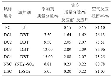 2.1 硫对焦空气反应性的影响