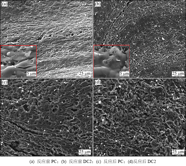 图1 反应前后PC和DC2试样的SEM像