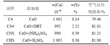 表5 掺CaO和S沥青焦试样的基本特征和空气反应残留率