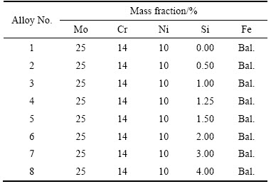 表1 Fe-Mo-Cr-Ni合金的名义成分