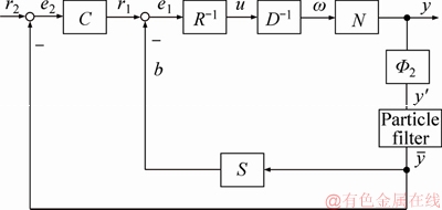 The proposed distributed time-delay control system design is shown in Figure 7. Here, N and D-1 are operators who decompose the plant to the right; S and R-1 are stabilized and designed to satisfy the Bezout identity SN+RD=I; Φ2 is the operator which is denoted the distributed time-delay of the output. The particle filter is a probabilistic method to estimate unobservable information from observable one. Basic theory of particle filter algorithm is given by Appendix B in detail. Thus, the particle filter can be applied to the distributed control system with the output time-delay.