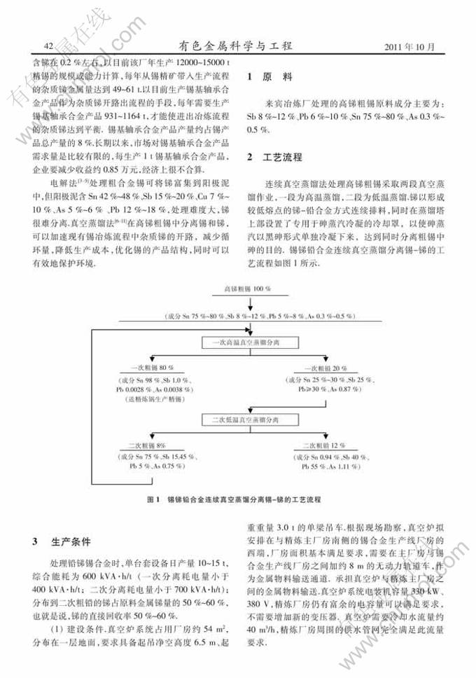 关键词:高锑粗锡;真空蒸馏;锡锑分离