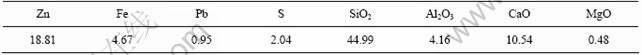由图1和2可知,矿物中锌的主要物相为硅酸盐类矿物,即为硅锌矿Zn2SiO4和异极矿Zn4(Si2O7)- (OH)2·H2O,还有大量的SiO2和钙镁等碱性脉石。可见,矿石成分复杂,碱性脉石含量高,处理这类复杂矿物难度较大。