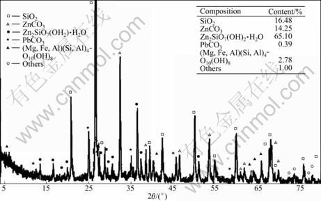 Fig.2 XRD pattern of high silicon zinc oxide ore