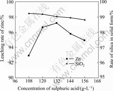 2.1 硫酸浓度对高硅氧化锌矿浸出的影响