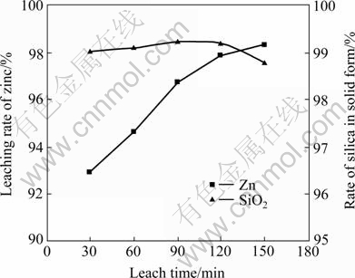 2.3 浸出时间对高硅氧化锌矿浸出的影响