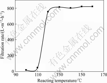 Fig.10 Effect of reacting temperature on slurry filtration rate