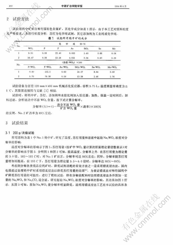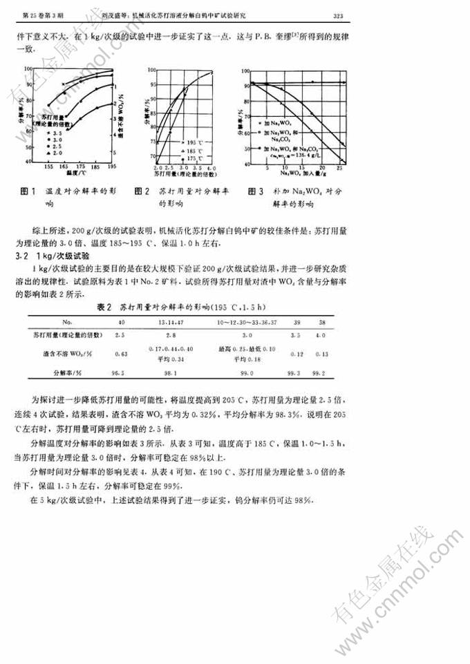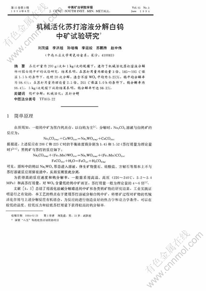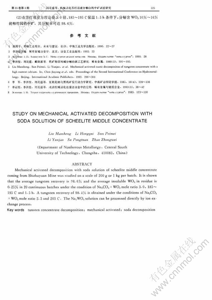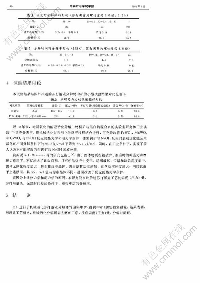 Key words:tunsten concentrate decomposition; mechanical activated; soda decomposition