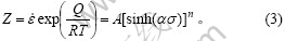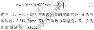 根据Sellars和Tegart引用Arrheniues关系提出的用1个含变形激活能Q和温度T的双曲正弦形式来描述这种热激活行为[13]: