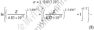 和应力指数n的平均值代入式(7)可得用参数Z表示的峰值应力