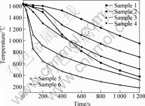 图4 AnyCasting计算得到的TC4铸件不同位置处凝固冷却曲线