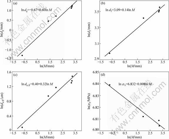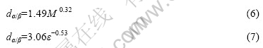 α/β片间距(dα/β)与铸件模数(M)和相变冷速(ε)之间的拟合关系式分别为