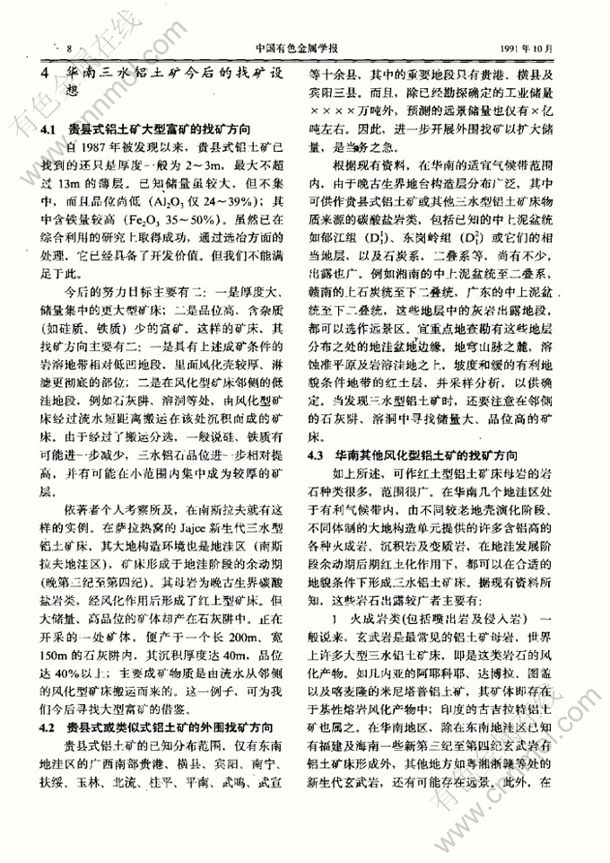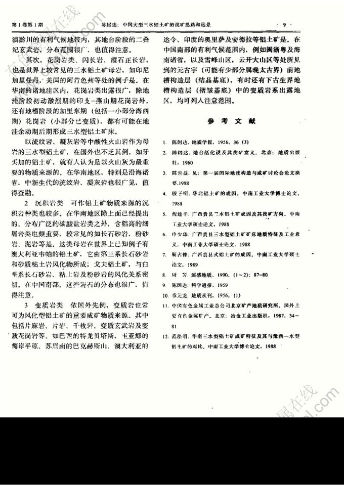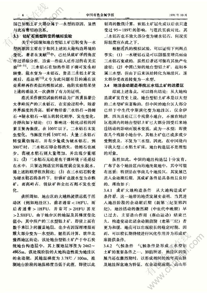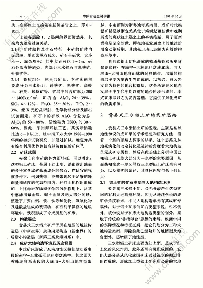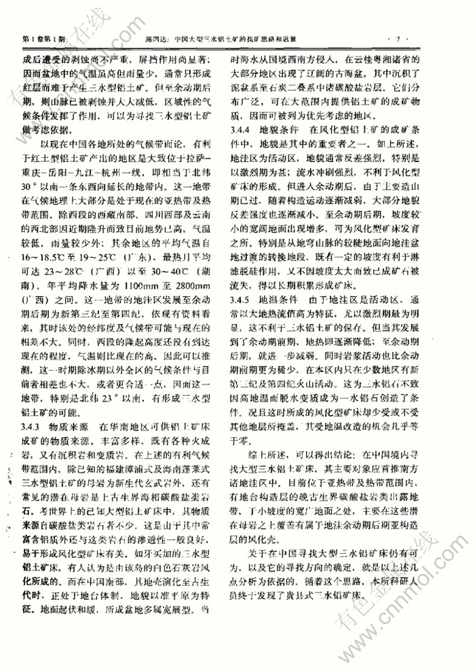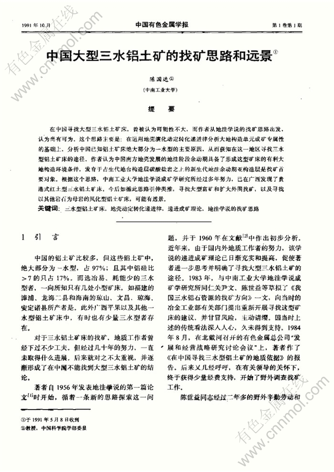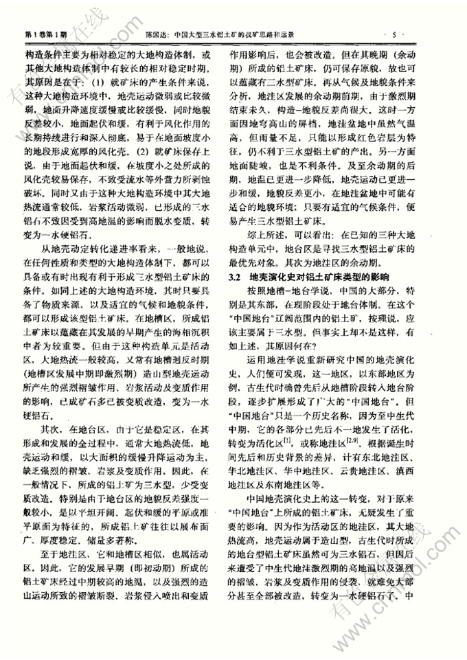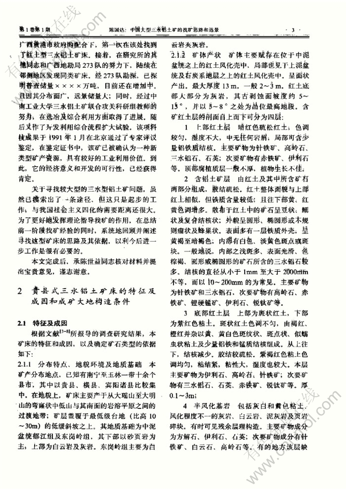 关键词:三水型铝土矿床, 地壳动定转化递进律, 递进成矿理论, 地洼学说的找矿思路