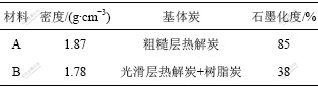 以聚丙烯腈炭纤维无纬布/炭毡混合叠层针刺毡为纤维预制体,分别采用化学气相渗透(CVI)、化学气相渗透+树脂浸渍炭化(CVI+I/C)技术制备2种分别具有粗糙层热解炭基体(RL)、光滑层热解炭+树脂炭浸渍炭(SL+RC)结构的C/C复合材料,当材料增密至1.80 g/cm3时备用。将上述材料加工成长×宽×高为35 mm×25 mm×5.5 mm的块状试样。摩擦面长×宽为25 mm×35 mm,表面粗糙度为0.8 ?m。材料性能见表1。