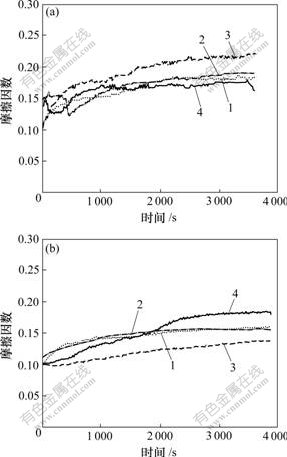 图2 在不同载荷下材料摩擦因数随时间的变化