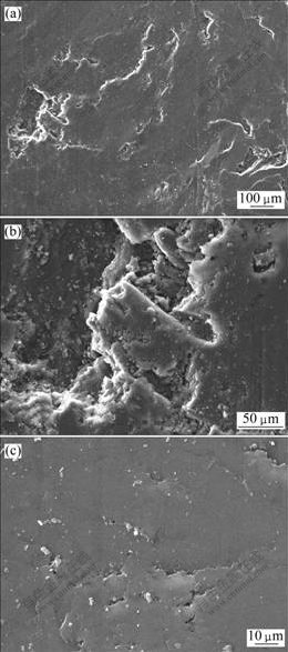 Fig.4 SEM morphologies of wear surface of composites A after test under 400 r/min, 80 N and 3 600 s