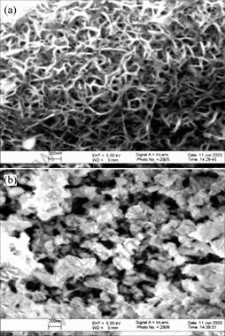 The SEM micrographs of sintered nano-CeO2/Zn composite is shown in Fig.6. Fig.6(a) shows that the grains of the bulk are fine and the structure is dense. Fig.6(b) shows that the pores distribute homogeneously. This indicates that the sintered material has an uniform structure and steady performance.