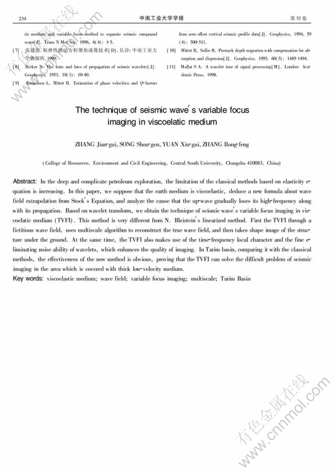 Key words:viscoelastic medium; wave field; variable focus imaging; multiscale; Tarim Basin