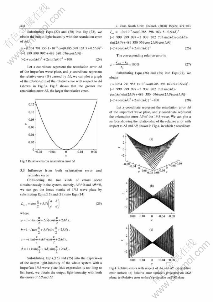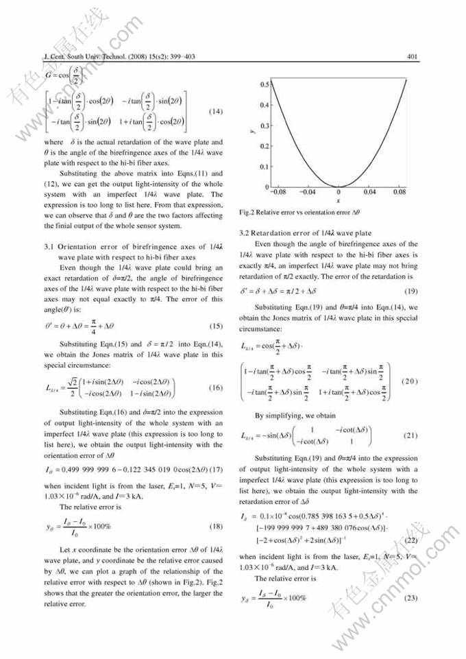 Key words:1/4λ wave plate; retardation; polarization; optical fiber; Jones matrix