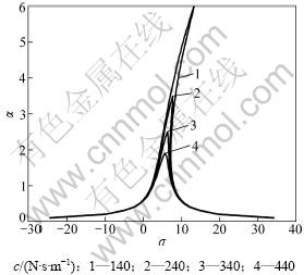方程(20)即为系统的频率响应关系式,下面分别固定其他参数而变化其中1个参数,得到各主要参数对系统幅频曲线的影响。图4~7所示分别为各主要参数变化对系统幅频特性影响的曲线。
