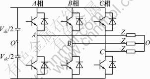 电压源型逆变器的典型电路如图1所示。若每相桥臂的状态用SX(X=A, B, C)表示,且上桥臂导通、下桥臂关断时SX=1,反之SX=0,则三相桥臂状态的组合(SA, SB, SC)共有8种。设直流母线晓以大义为Vdc,则输出相电压[UAO, UBO, UCO]T与[SA, SB, SC]T之间的关系可表示为: