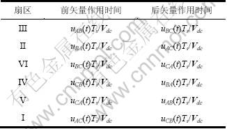 同理可求得其他扇区相邻矢量的作用时间,如表2所示。