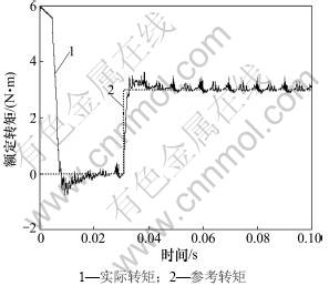 图8与图9所示分别为转速跟踪与转矩响应曲线。可以看出:系统具有较好的动静态性能,即使在负载变化时也仍然能够很好地跟踪转速,静态误差为零,进一步验证了本文所提出的新型算法的正确性和可行性。