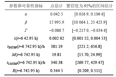 则模型参数和可靠性指标的点估计和置信度为95%的区间估计如表2所示。